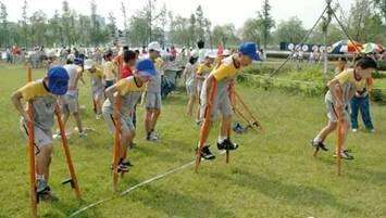 老师揭晓了答案,原来是要踩高跷呀!老师又说:“谁来给大家做一个示范?”熊xx自告奋勇地说:“我会。”我们看了熊xx踩得稳定自如,我想:这有什么难的。