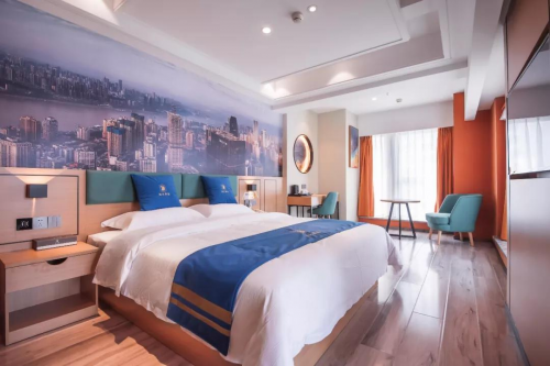 房间内沉稳大气的蓝、金搭配,兼备实用和美观的多功能家具,干湿分离的卫生间等全新设计,非常符合中端商旅的审美需求。房间内配有光纤网络、有线顶盒液晶电视、宽敞卫浴间等设备,为宾客提供舒适多元的体验。