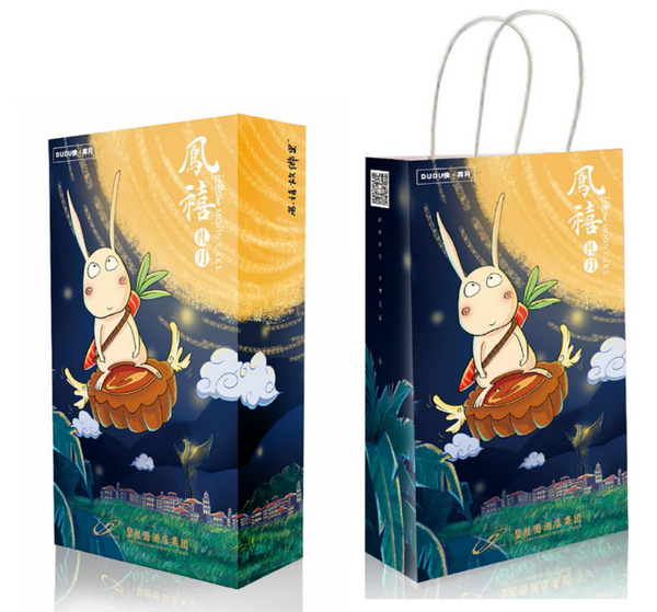 不仅如此,今年凤禧礼月还以兔子为原型,打造全新原创月饼IP——DUDU侠。“每个人心中都有一个DUDU侠,梦想可以仗剑走天涯”,“萌萌哒”的包装造型辅以2粒装设计,正吻合当下年轻人的审美取向和健康轻食的理念,DUDU侠一经推出,便成为中秋热销产品之一。