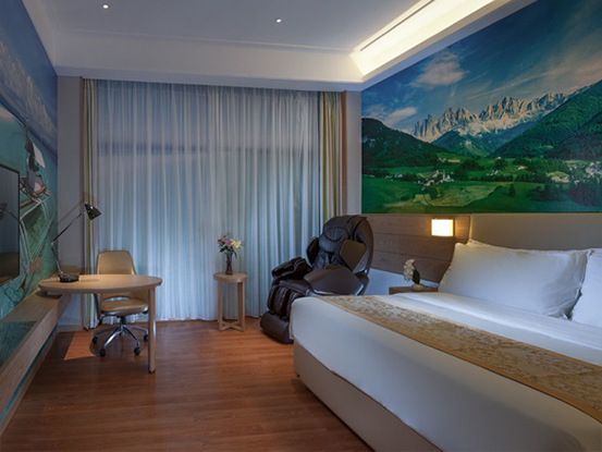 高满意度的用户体验一直以来都是酒店的坚持与追求,在各大酒店服务不断增值的同时,优质资源的合作共享与新技术的引入融合,已经成为酒店服务优化、服务创新的有效方式。立足于满足符合消费者需求的延伸服务,华纳国际好眠酒店首将按摩椅推行到酒店,打造从床垫、枕头、灯光、装饰等各方面的深睡眠环境,实现酒店“到位式服务”向“创新式服务”的过渡。