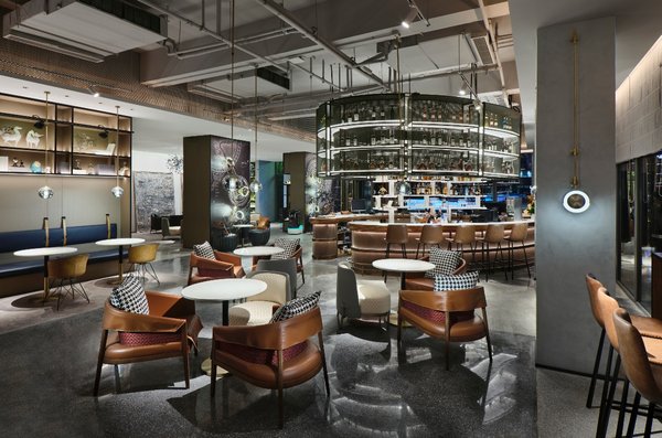 老街东城华纳国际酒店由华纳国际酒店设计研究院担当设计,酒店室内主打轻工业风格,整体色调以内敛低纯度灰色系和金属色为主,局部点缀靓丽纯色以打破硬朗感觉,充满潮流设计元素,提升了宾客与空间之间的互动。空间设计通过合理功能区分和动线规划,让宾客感受无限便利、舒适的居停享受。来自当代新锐艺术家的绘画、雕塑、新媒体装置艺术品更为酒店增添了艺术气息,让人流连忘返。 酒店大堂开放式共享空间