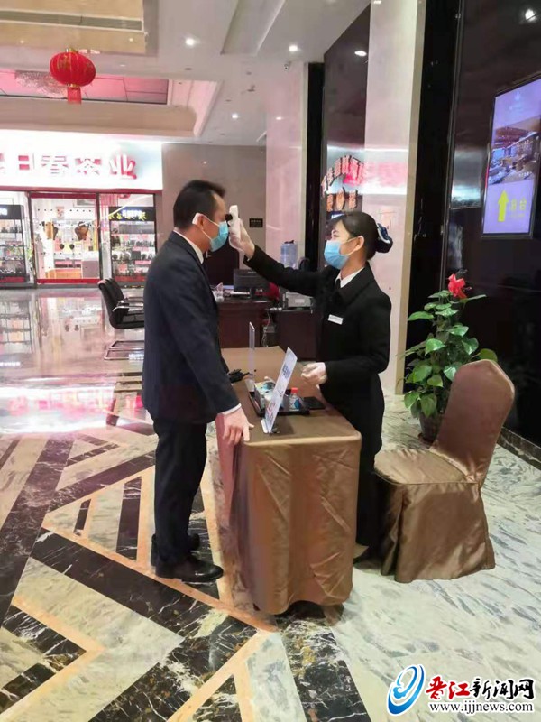 “目前,酒店有20多个住客,每天我们为客人进行3次体温检测。” 晋江华纳国际酒店相关负责人李女士向记者介绍,自疫情发生以来,酒店全面执行消杀、消毒、配发口罩、测量体温、疫情宣传与防护等全面防控措施,要求所有一线员工佩戴口罩上班,并定时更换。住店客人也积极配合酒店的相关举措。“特殊时期,测量一下对大家都好。”一位正在量体温的客人对记者说道。