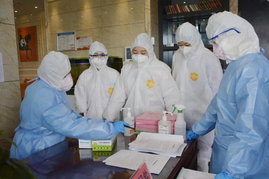 酒店定为疫源地人员定点服务场所后,困难总是一个接着一个。酒店没有专业防疫人员,没有防疫经验,大部分员工情绪波动大,深感恐惧,甚至有部分员工提出离职,酒店全力做好员工的心理疏导工作,安抚员工情绪,并协助医务人员对所有酒店职工进行疫情防控及突出事件处理培训,同时每日分享关于新型冠状病毒感染的疫情新闻,让员工了解最新最准确的疫情信息,稳住人心。