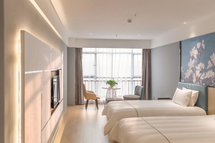 进入大堂,整体原木色泽与光影配搭,前台背景墙上的薰衣草花瓣与摇曳的吊灯交相呼应,柔和,安静。浮躁的心,也渐渐被抚慰。 客房布局合理的空间分区,将室内空间分隔成多个彼此独立而又有机融合的区域,让旅客出行时的商务、娱乐、洗浴、办公等需求得到充分满足。